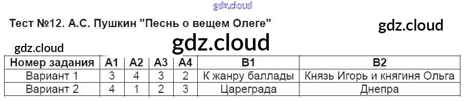 Ответ на задание 12 Контрольно-измерительные материалы (КИМ) Литература за 8 (восьмой) класс Зубова 2015 ФГОС онлайн и без номера телефона.