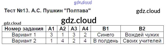Ответы к Тестам по Литературе 8 класс Контрольно-измерительные материалы (КИМ) Зубова ВАКО