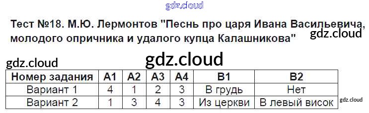 Ответы к Тестам по Литературе 8 класс Контрольно-измерительные материалы (КИМ) Зубова ВАКО