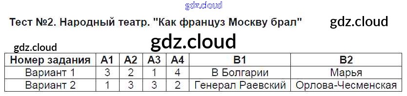 Ответы к Тестам по Литературе 8 класс Контрольно-измерительные материалы (КИМ) Зубова ВАКО