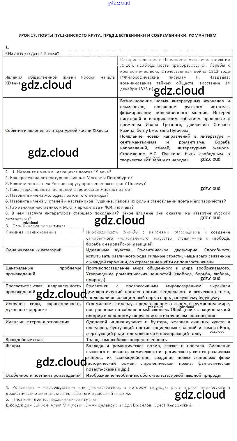 Ответ на задание 17 Рабочая тетрадь Литература за 8 (восьмой) класс Соловьева Инновационная школа 2016 ФГОС онлайн и без номера телефона.