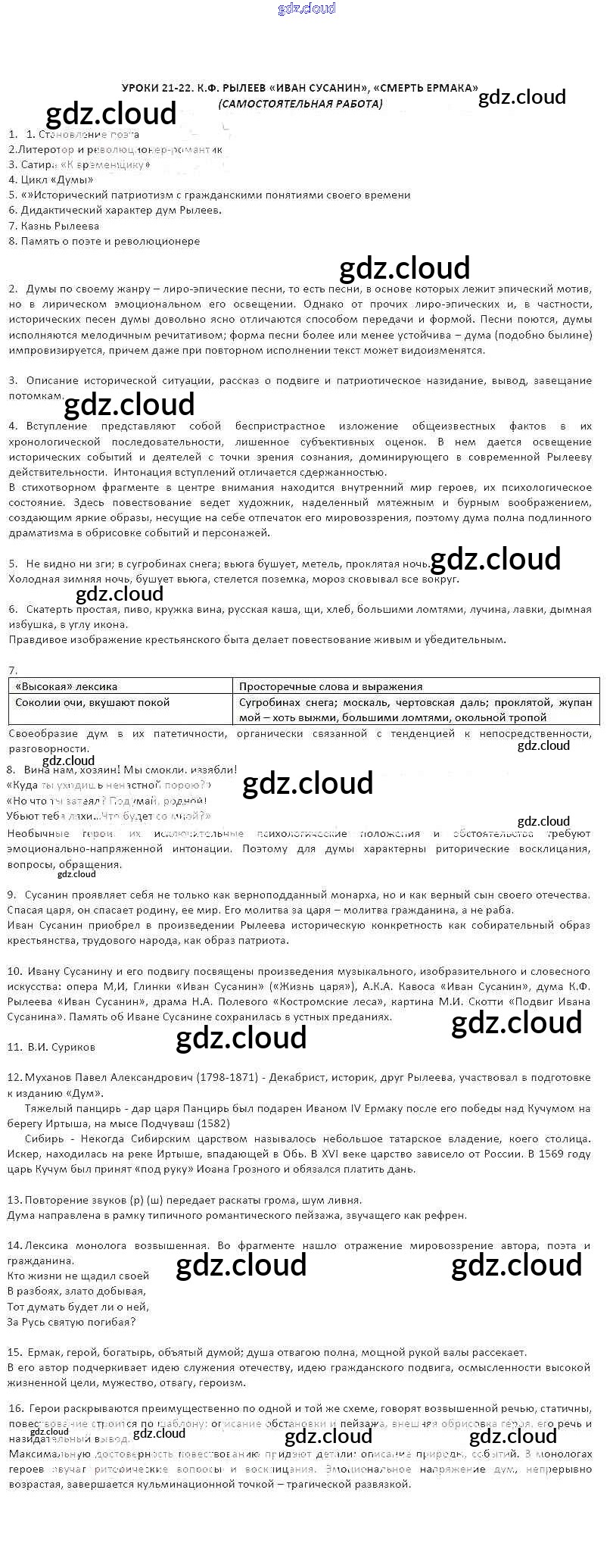 Ответ на задание 21 Рабочая тетрадь Литература за 8 (восьмой) класс Соловьева Инновационная школа 2016 ФГОС онлайн и без номера телефона.