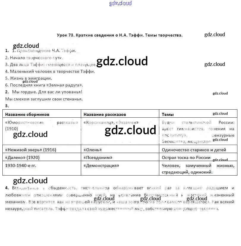 Ответ на задание 73 Рабочая тетрадь Литература за 8 (восьмой) класс Соловьева Инновационная школа 2016 ФГОС онлайн и без номера телефона.