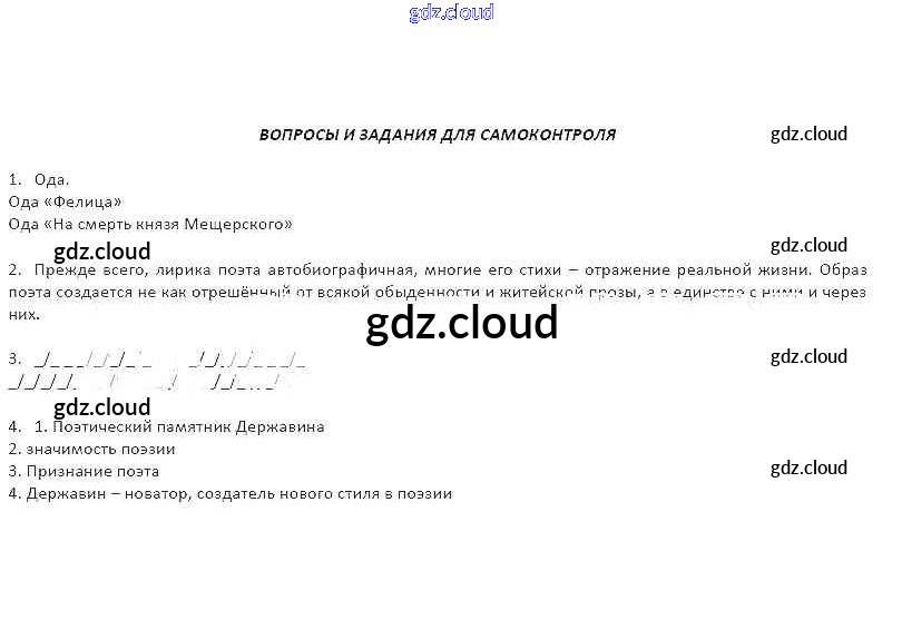Ответы к Вопросам и заданиям для самоконтроля по Литературе 8 класс Рабочая тетрадь Соловьева Инновационная школа Русское слово