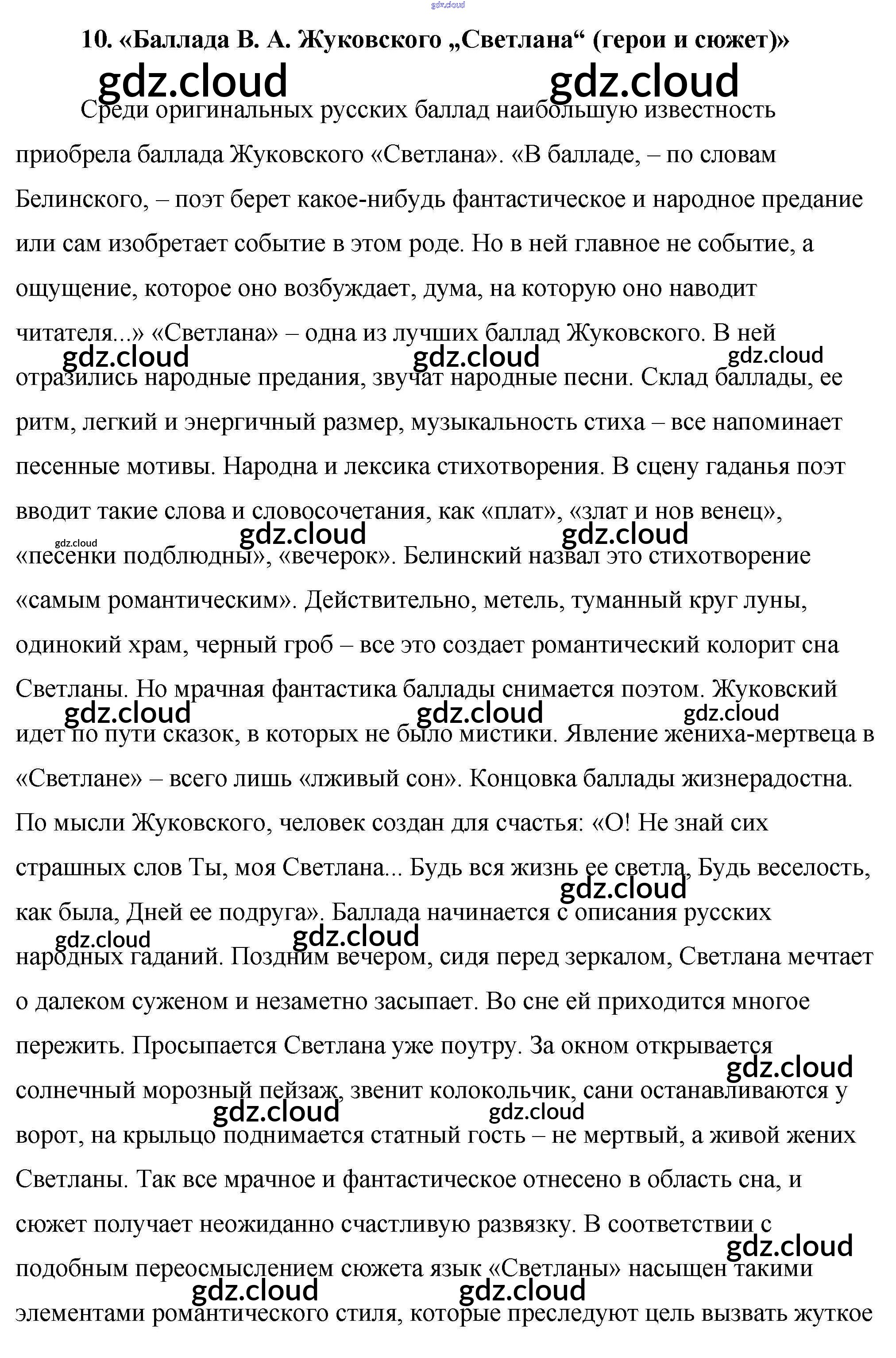 Ответ на задание 10. «Баллада В. А. Жуковского „Светлана“ (герои и сюжет)» Сочинения Литература за 9 (девятый) класс Еременко Сам себе репетитор 2020