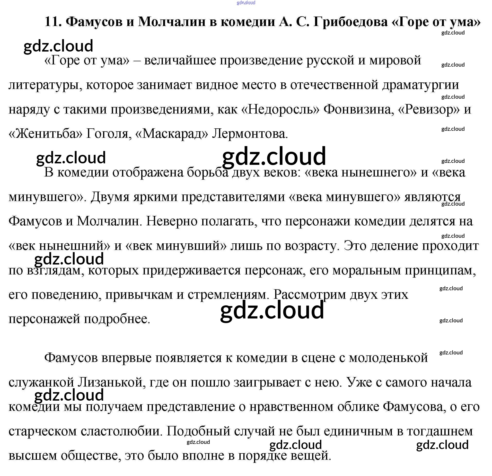 Ответ на задание 11. Фамусов и Молчалин в комедии А. С. Грибоедова «Горе от ума» Сочинения Литература за 9 (девятый) класс Еременко Сам себе репетитор 2020