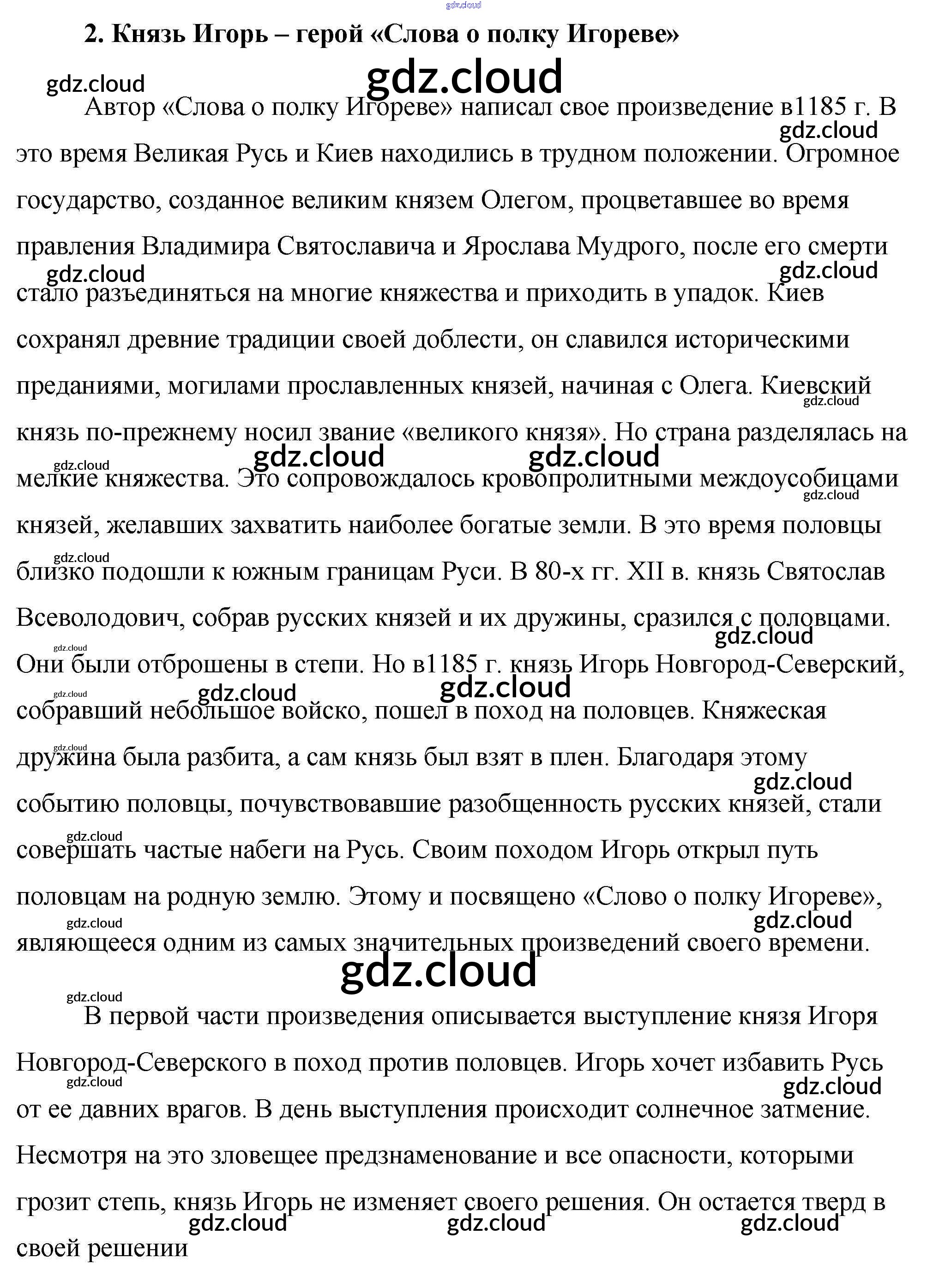 Ответ на задание 2. Князь Игорь – герой «Слова о полку Игореве» Сочинения Литература за 9 (девятый) класс Еременко Сам себе репетитор 2020