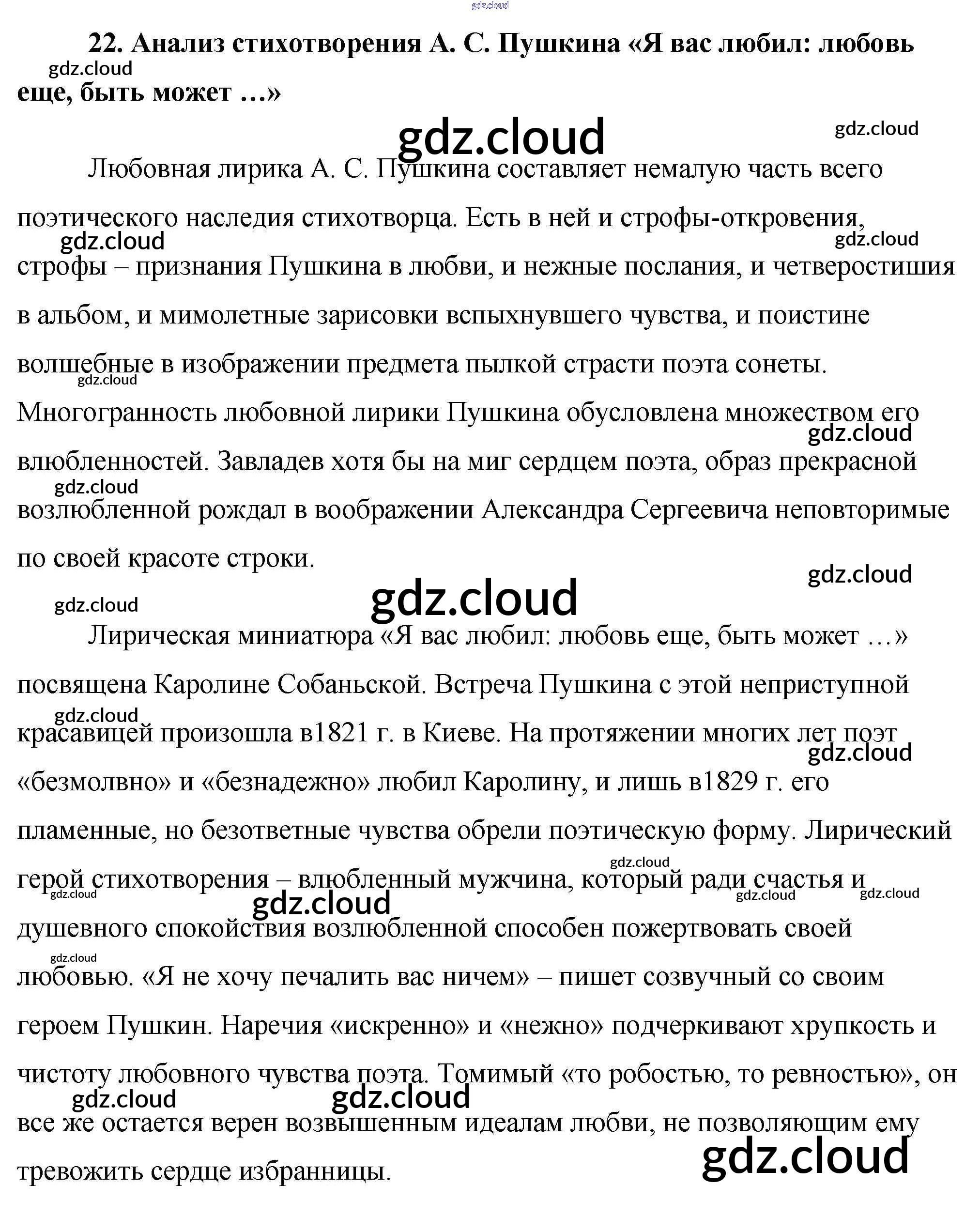 Ответ на задание 22. Анализ стихотворения А. С. Пушкина «Я вас любил: любовь еще, быть может …» Сочинения Литература за 9 (девятый) класс Еременко Сам себе репетитор 2020
