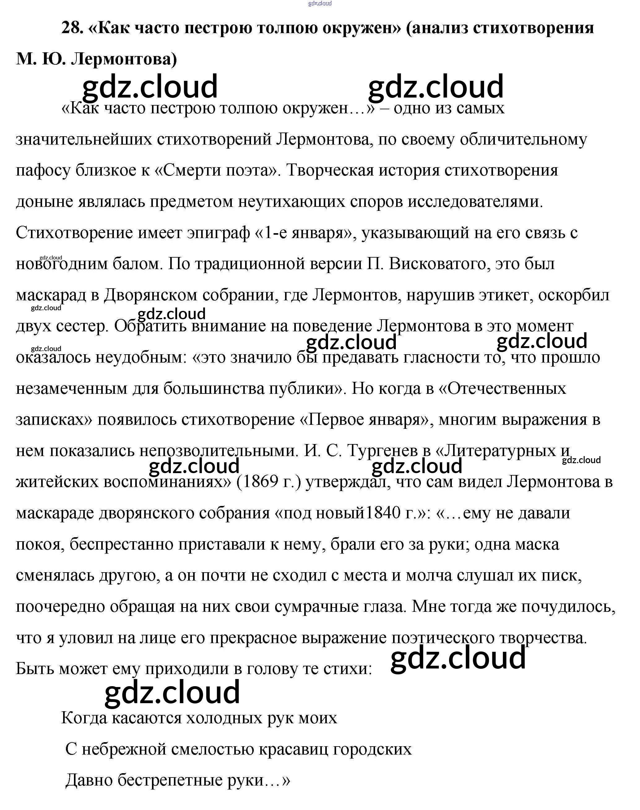 Ответ на задание 28. «Как часто пестрою толпою окружен» (анализ стихотворения М. Ю. Лермонтова) Сочинения Литература за 9 (девятый) класс Еременко Сам себе репетитор 2020