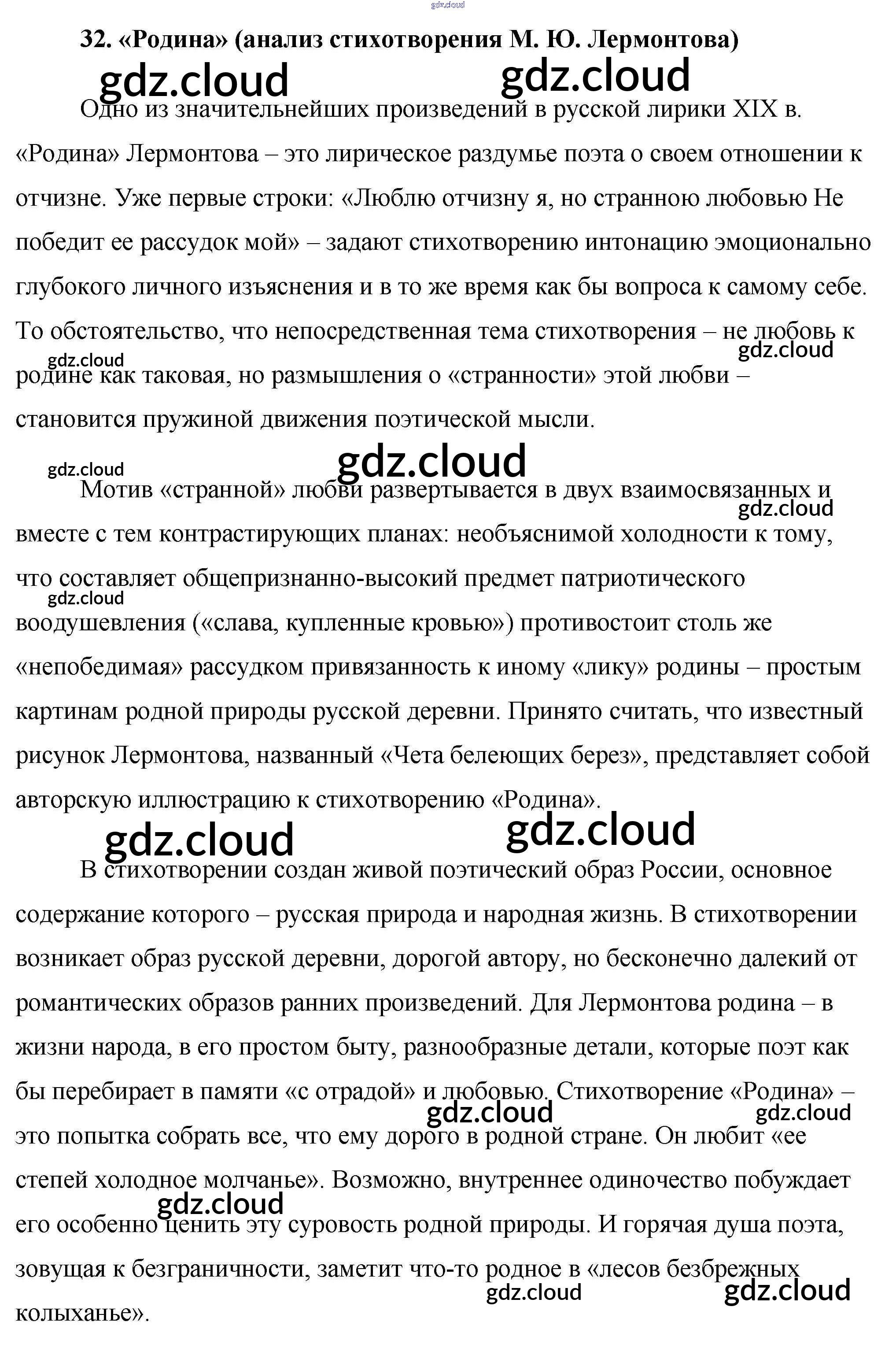 Ответ на задание 32. «Родина» (анализ стихотворения М. Ю. Лермонтова) Сочинения Литература за 9 (девятый) класс Еременко Сам себе репетитор 2020