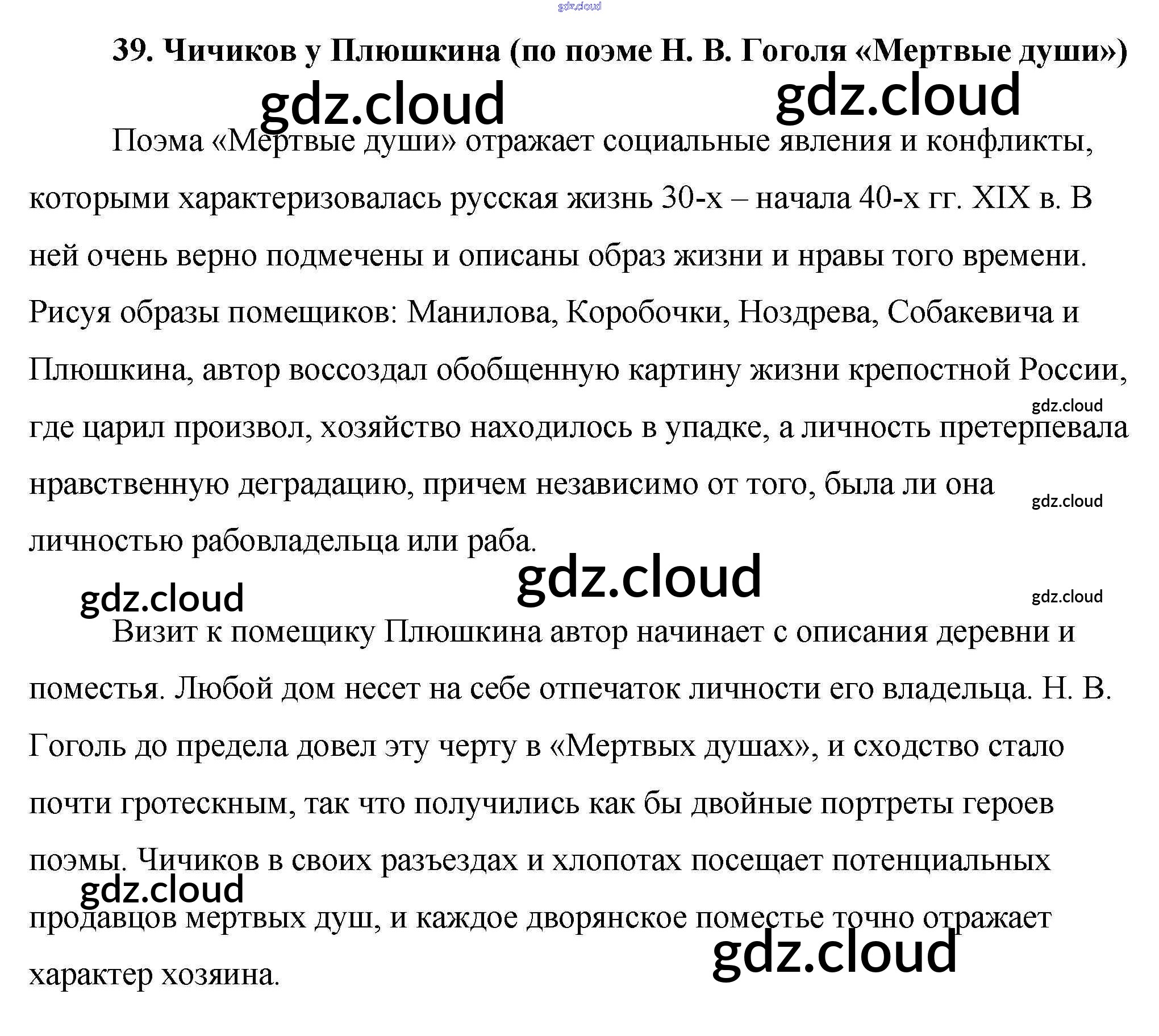 Ответ на задание 39. Чичиков у Плюшкина (по поэме Н. В. Гоголя «Мертвые души») Сочинения Литература за 9 (девятый) класс Еременко Сам себе репетитор 2020