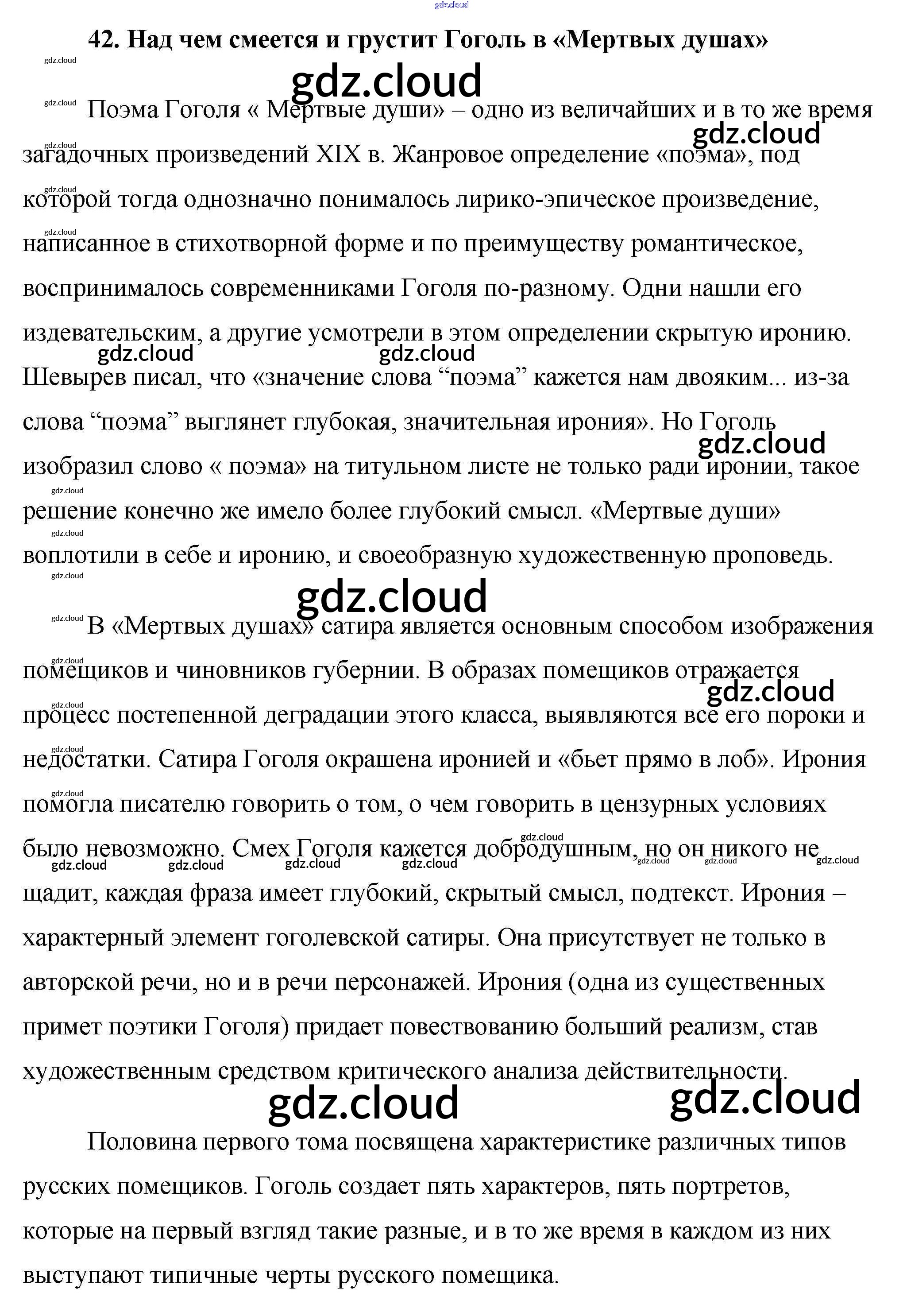 Ответ на задание 42. Над чем смеется и грустит Гоголь в «Мертвых душах» Сочинения Литература за 9 (девятый) класс Еременко Сам себе репетитор 2020
