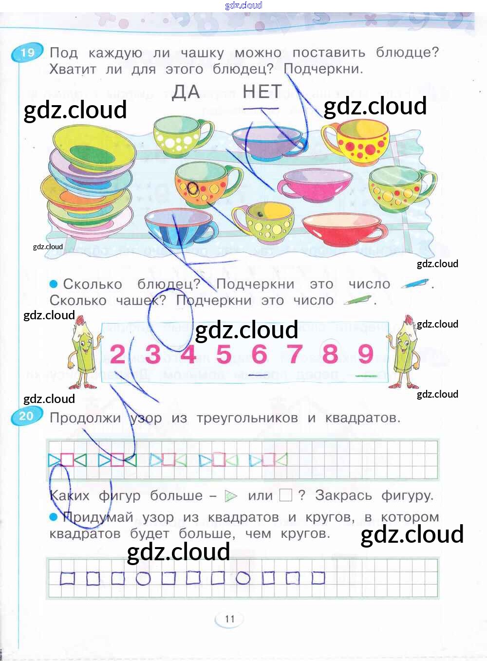 Ответ на задание стр.11 Рабочая тетрадь Математика за 1 (первый) класс Бененсон 2015 Часть 1, 2, 3, 4