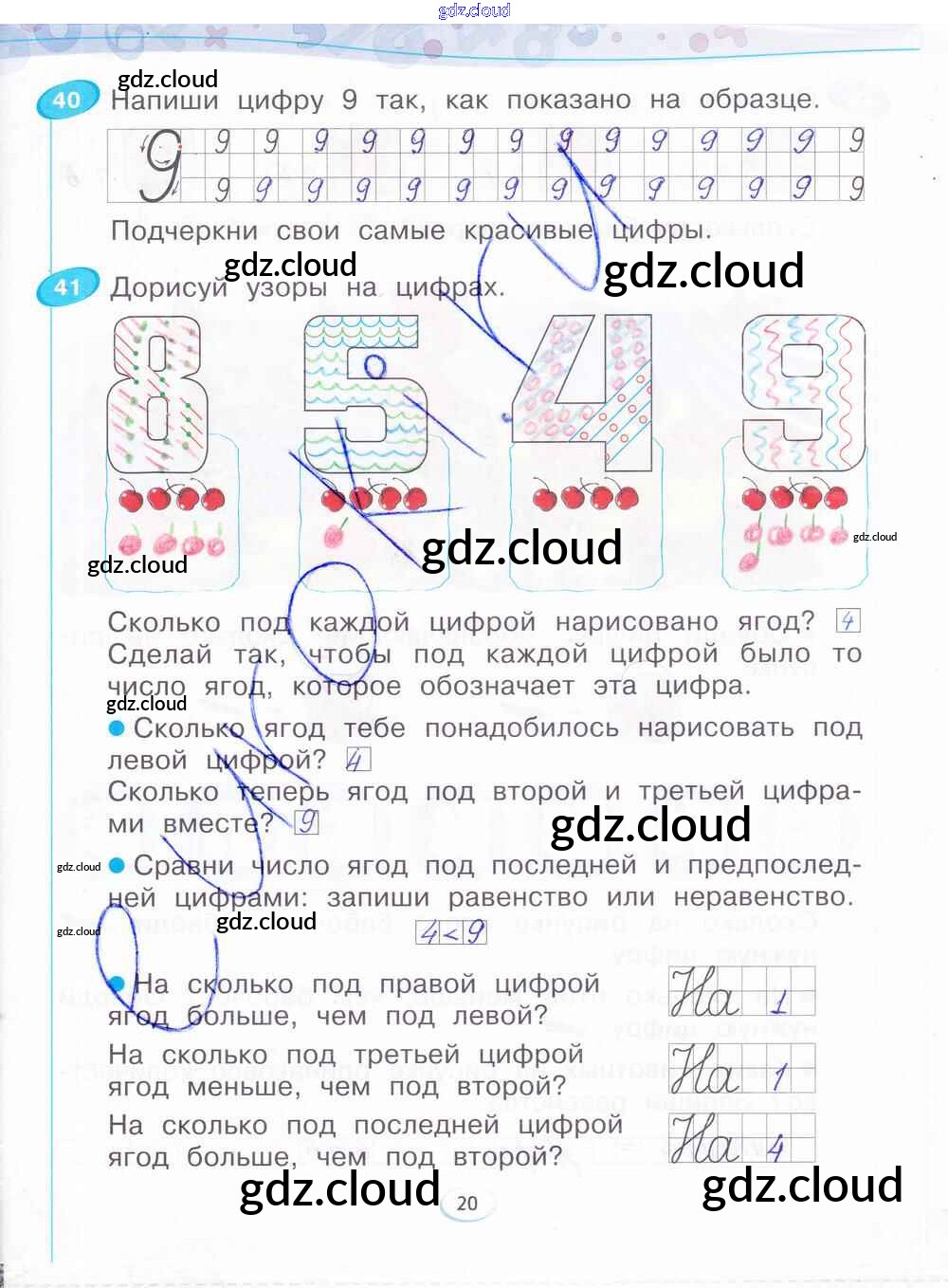 Ответ на задание стр.20 Рабочая тетрадь Математика за 1 (первый) класс Бененсон 2015 Часть 1, 2, 3, 4