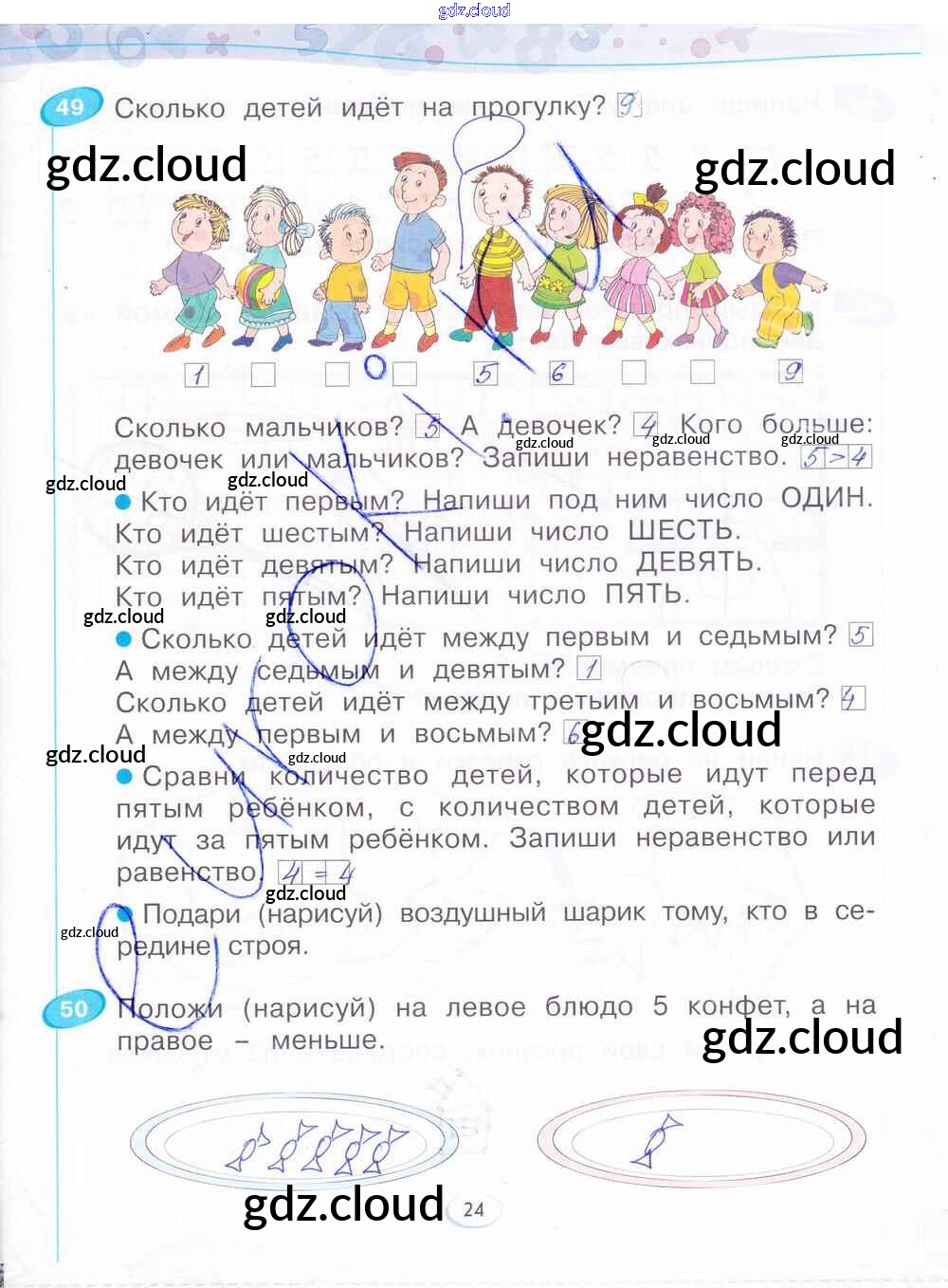 Ответ на задание стр.24 Рабочая тетрадь Математика за 1 (первый) класс Бененсон 2015 Часть 1, 2, 3, 4
