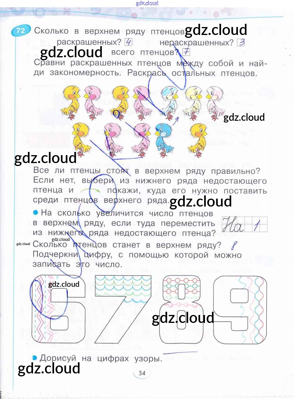 Ответ на задание стр.34 Рабочая тетрадь Математика за 1 (первый) класс Бененсон 2015 Часть 1, 2, 3, 4