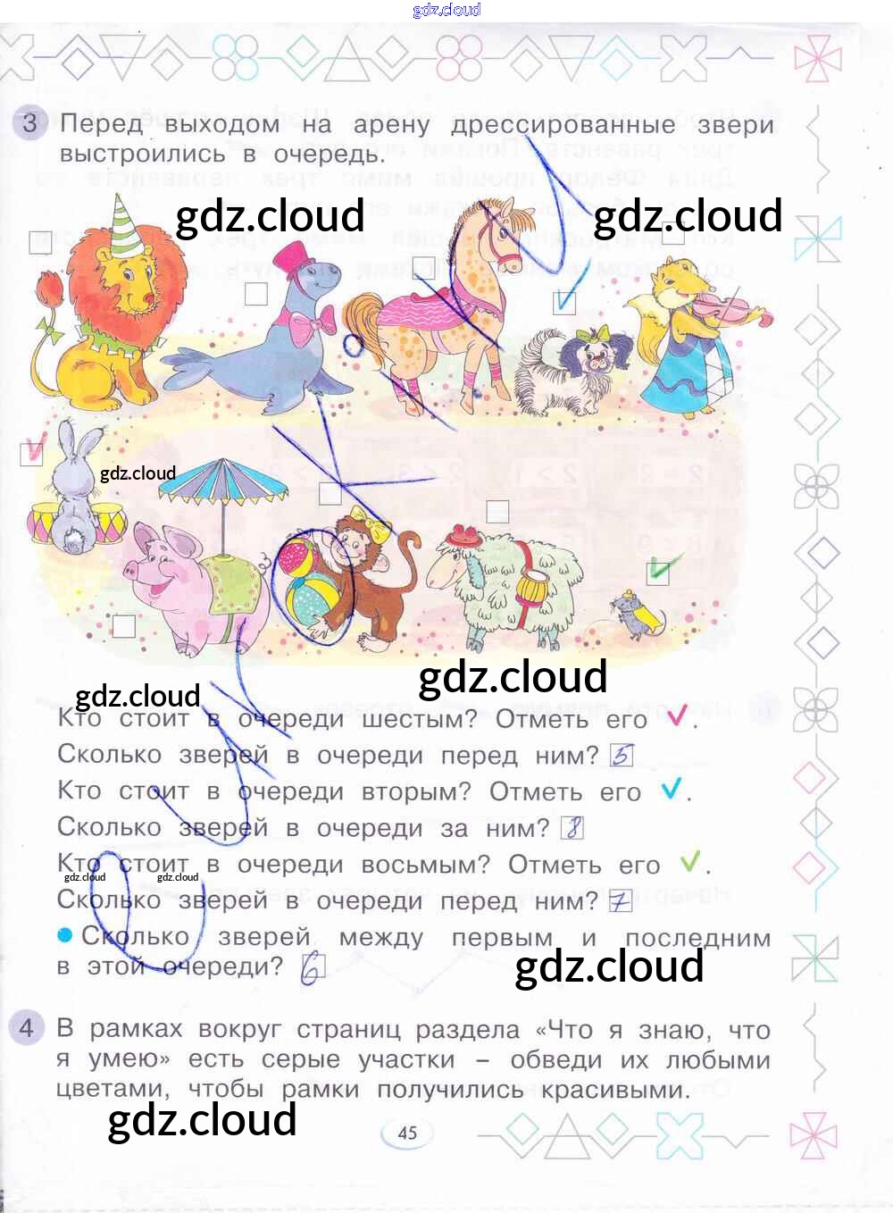 Ответ на задание стр.45 Рабочая тетрадь Математика за 1 (первый) класс Бененсон 2015 Часть 1, 2, 3, 4