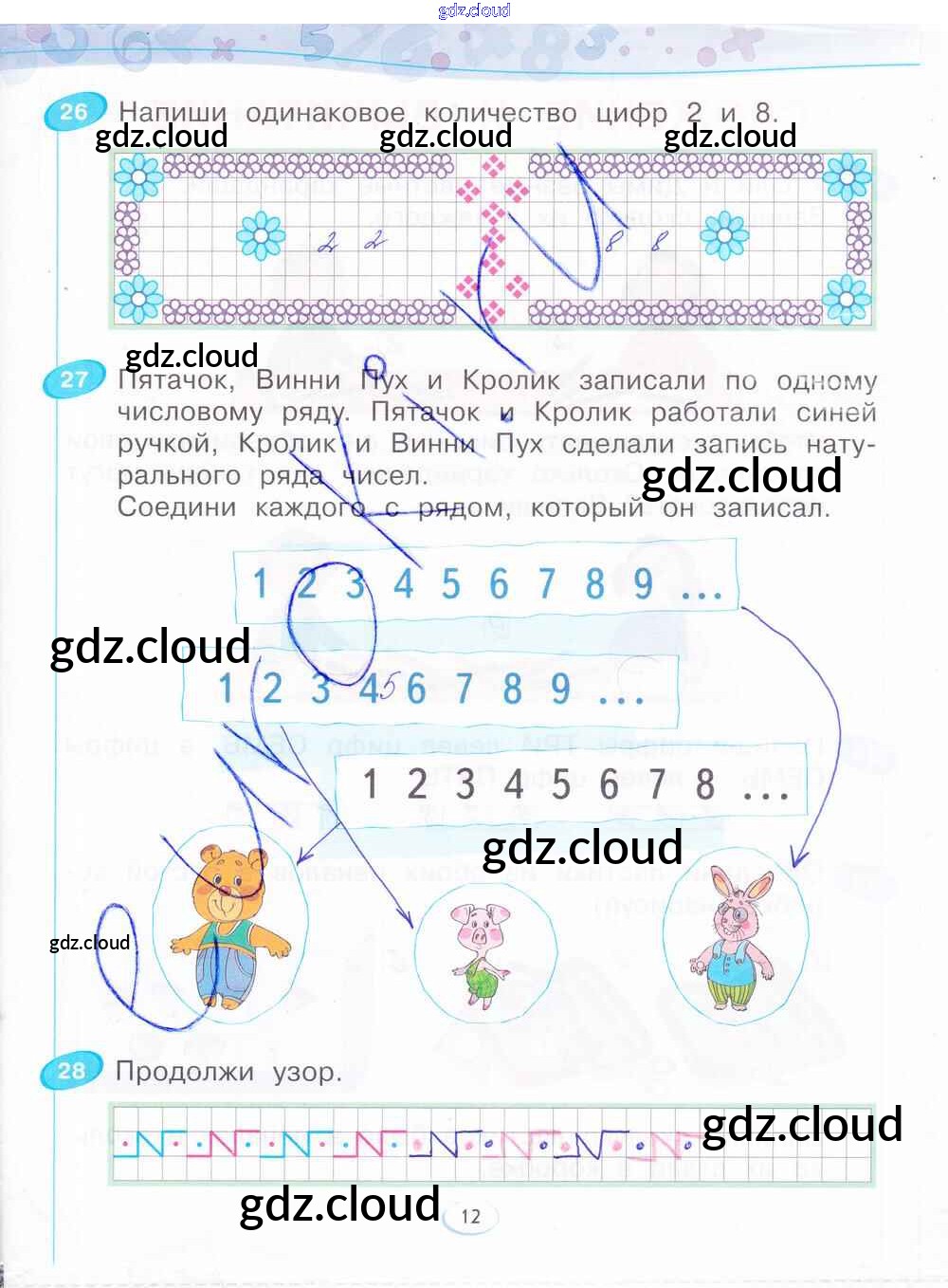 Ответ на задание стр.12 Рабочая тетрадь Математика за 1 (первый) класс Бененсон 2015 Часть 1, 2, 3, 4