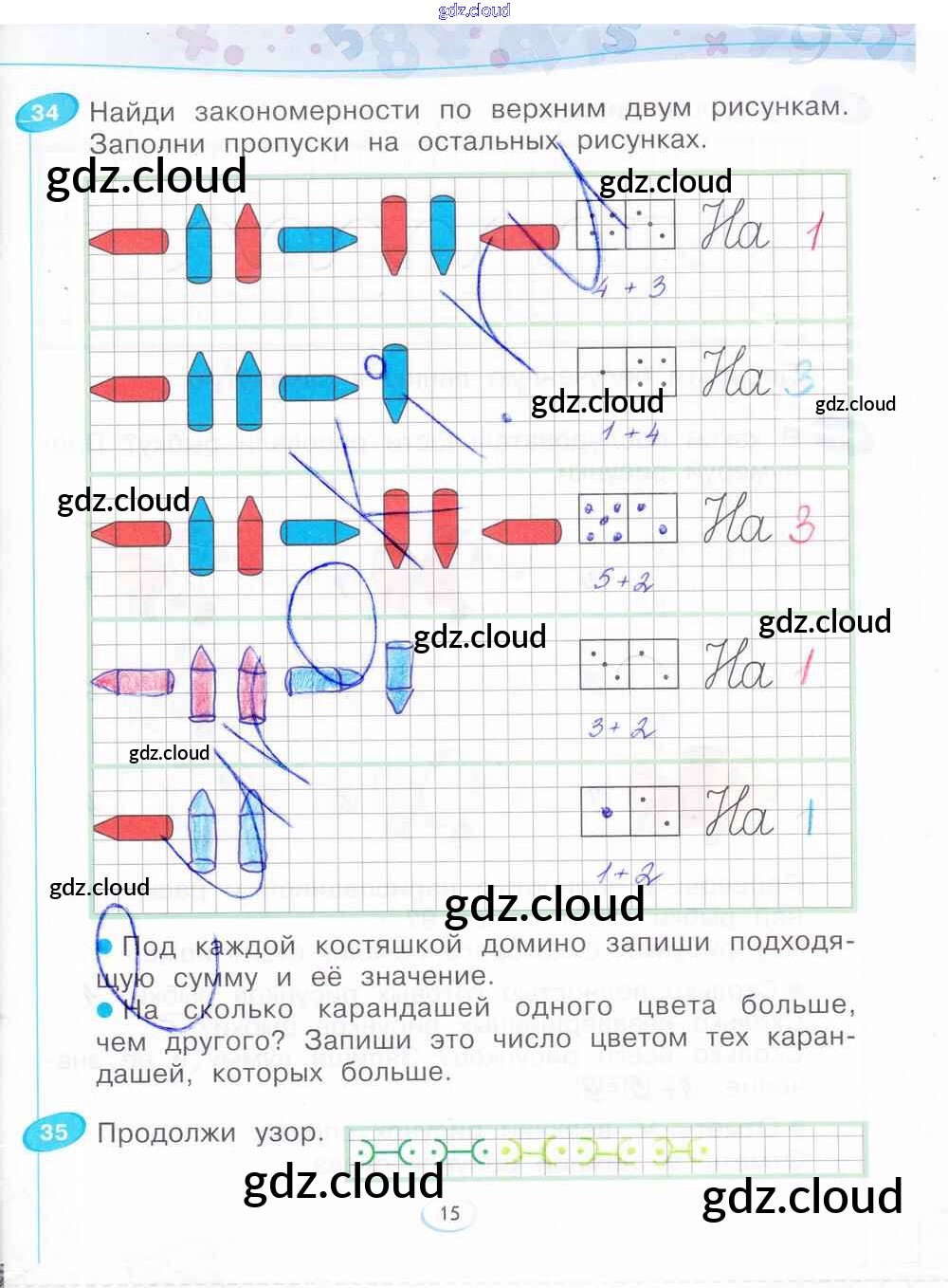 Ответ на задание стр.15 Рабочая тетрадь Математика за 1 (первый) класс Бененсон 2015 Часть 1, 2, 3, 4