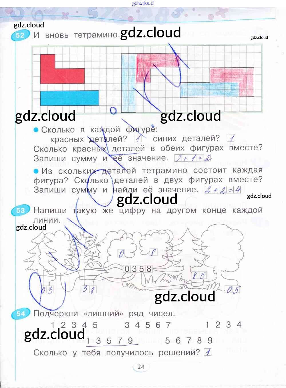 Ответ на задание стр.24 Рабочая тетрадь Математика за 1 (первый) класс Бененсон 2015 Часть 1, 2, 3, 4