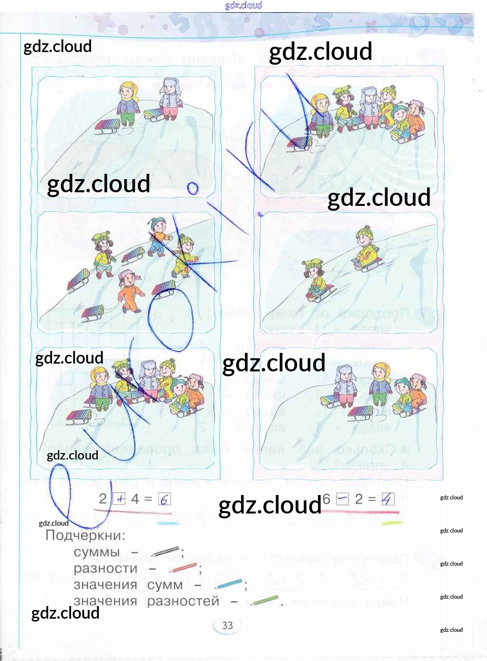 Ответ на задание стр.33 Рабочая тетрадь Математика за 1 (первый) класс Бененсон 2015 Часть 1, 2, 3, 4