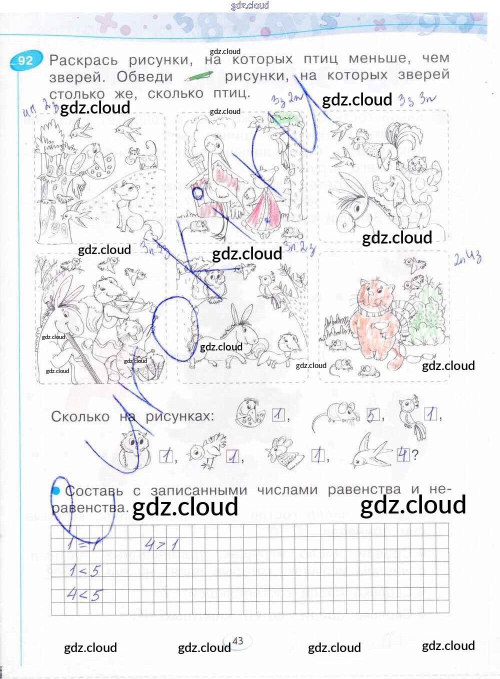 Ответ на задание стр.43 Рабочая тетрадь Математика за 1 (первый) класс Бененсон 2015 Часть 1, 2, 3, 4