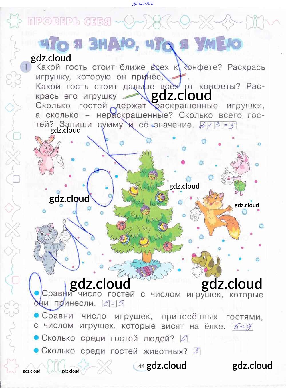 Ответ на задание стр.44 Рабочая тетрадь Математика за 1 (первый) класс Бененсон 2015 Часть 1, 2, 3, 4