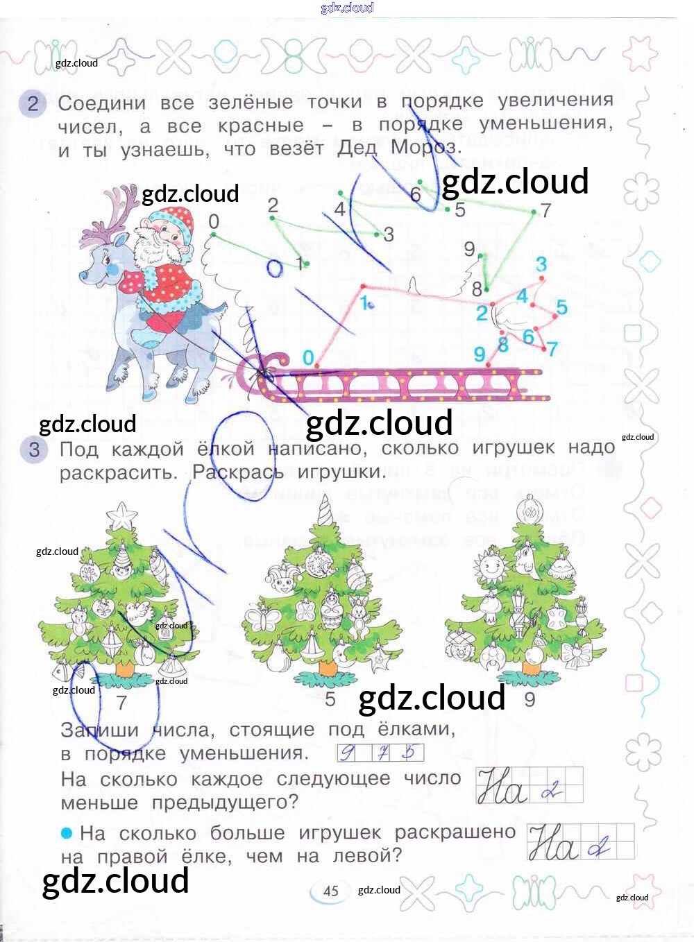 Ответ на задание стр.45 Рабочая тетрадь Математика за 1 (первый) класс Бененсон 2015 Часть 1, 2, 3, 4