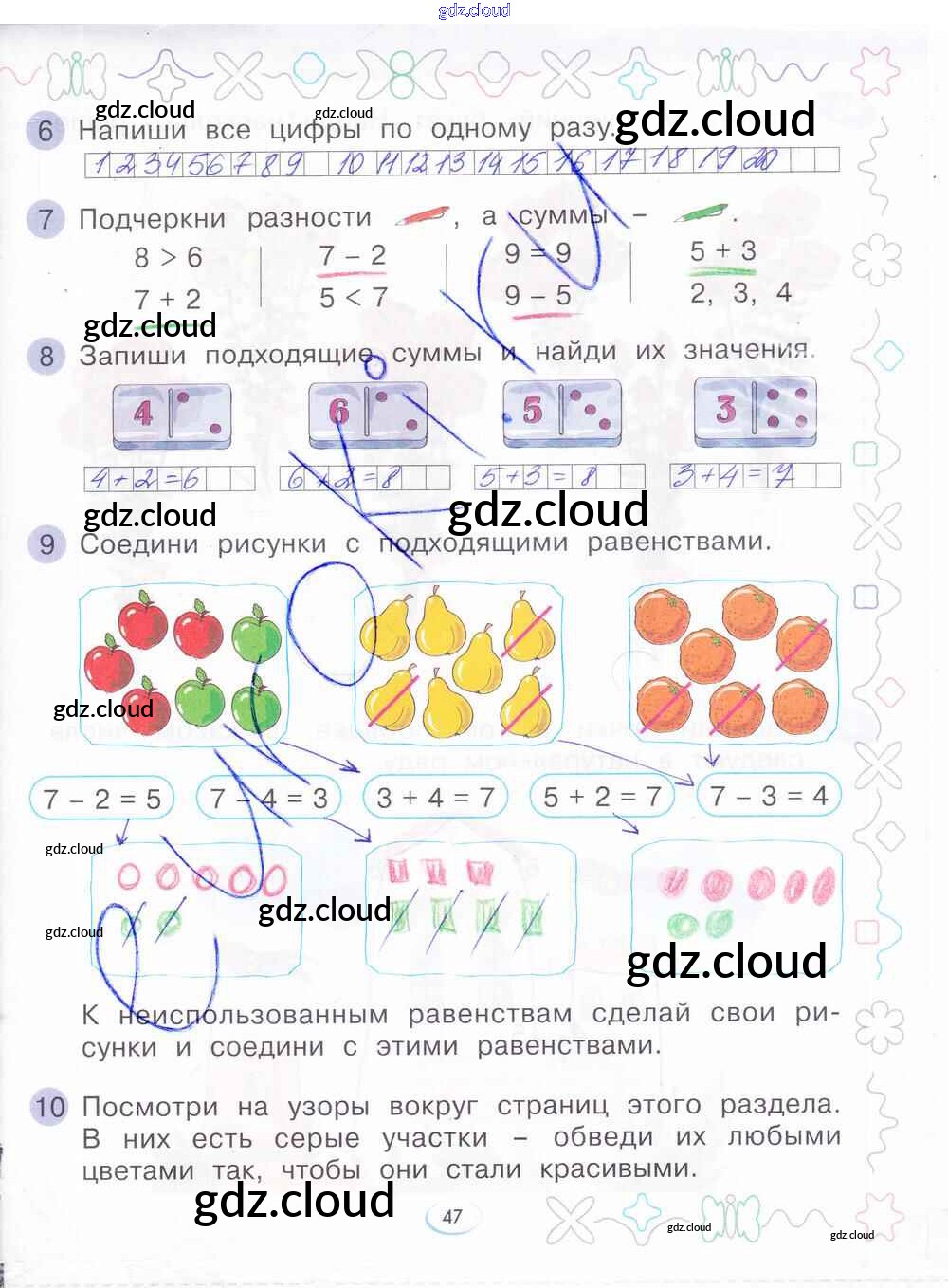 Ответ на задание стр.47 Рабочая тетрадь Математика за 1 (первый) класс Бененсон 2015 Часть 1, 2, 3, 4