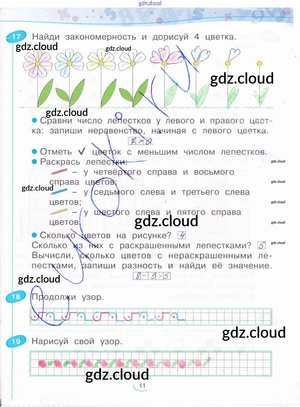 Ответ на задание стр.11 Рабочая тетрадь Математика за 1 (первый) класс Бененсон 2015 Часть 1, 2, 3, 4