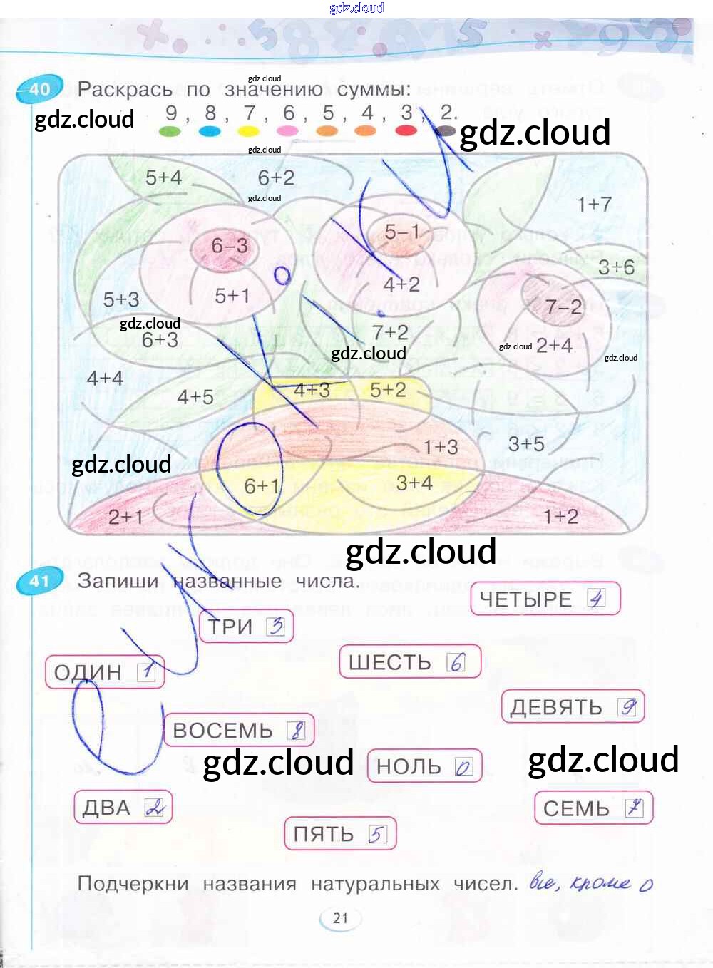 Ответ на задание стр.21 Рабочая тетрадь Математика за 1 (первый) класс Бененсон 2015 Часть 1, 2, 3, 4