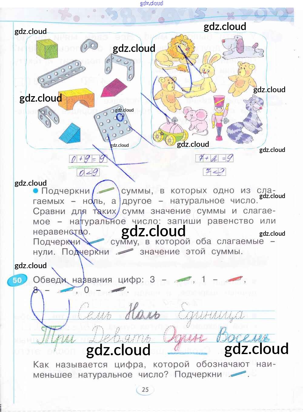 Ответ на задание стр.25 Рабочая тетрадь Математика за 1 (первый) класс Бененсон 2015 Часть 1, 2, 3, 4
