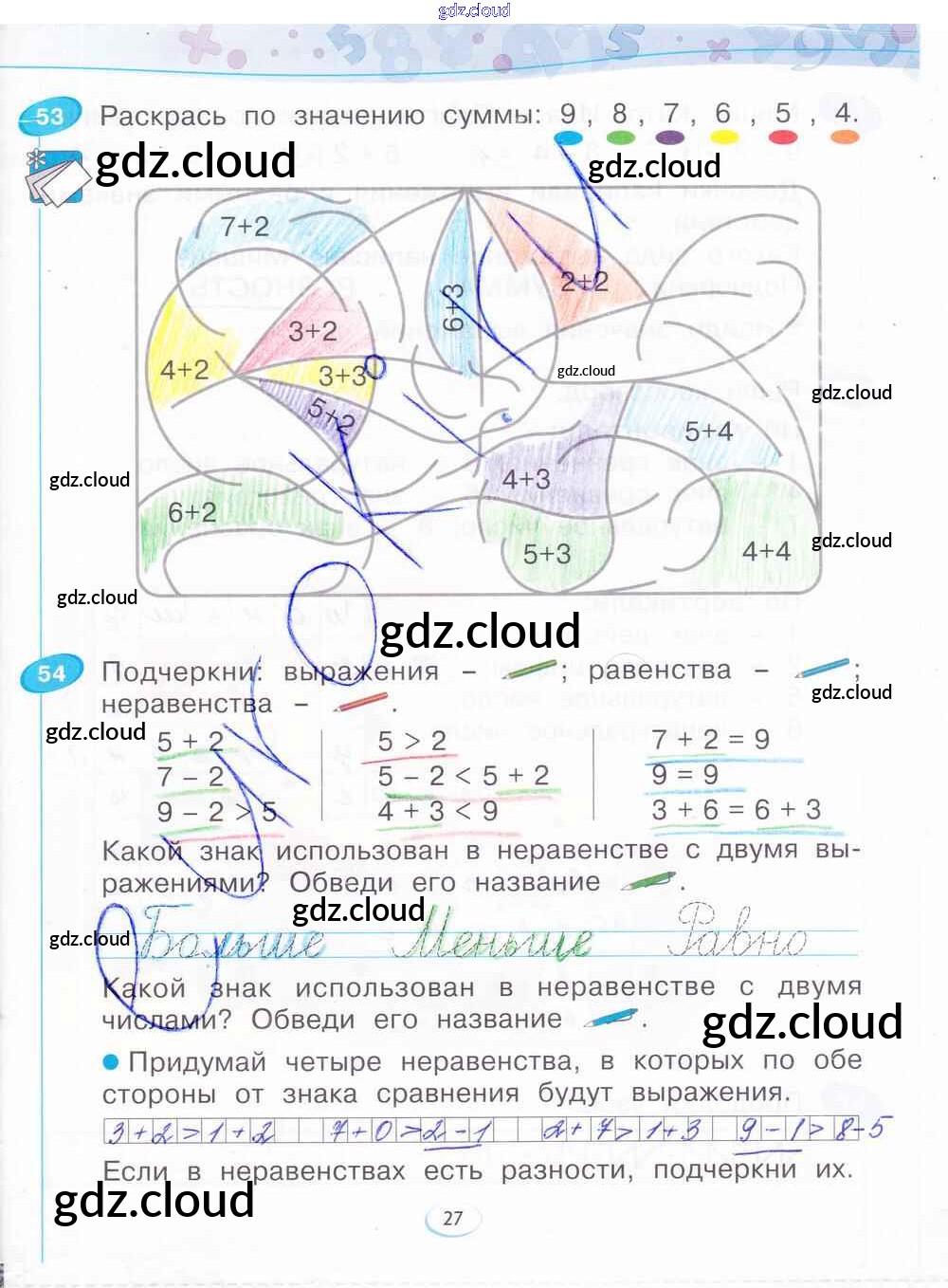 Ответ на задание стр.27 Рабочая тетрадь Математика за 1 (первый) класс Бененсон 2015 Часть 1, 2, 3, 4