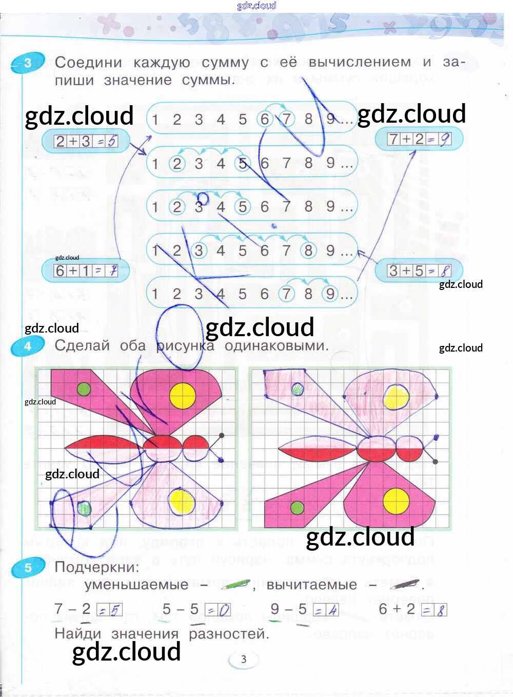 Ответ на задание стр.3 Рабочая тетрадь Математика за 1 (первый) класс Бененсон 2015 Часть 1, 2, 3, 4 ФГОС онлайн и без номера телефона.