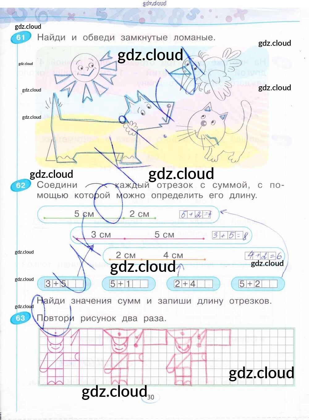 Ответ на задание стр.30 Рабочая тетрадь Математика за 1 (первый) класс Бененсон 2015 Часть 1, 2, 3, 4