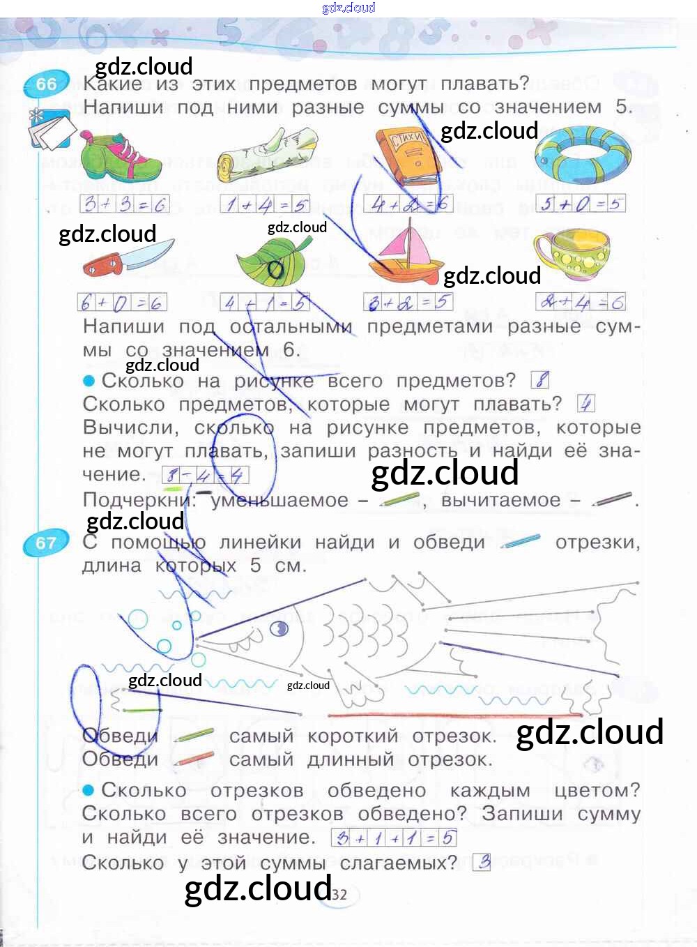 Ответ на задание стр.32 Рабочая тетрадь Математика за 1 (первый) класс Бененсон 2015 Часть 1, 2, 3, 4