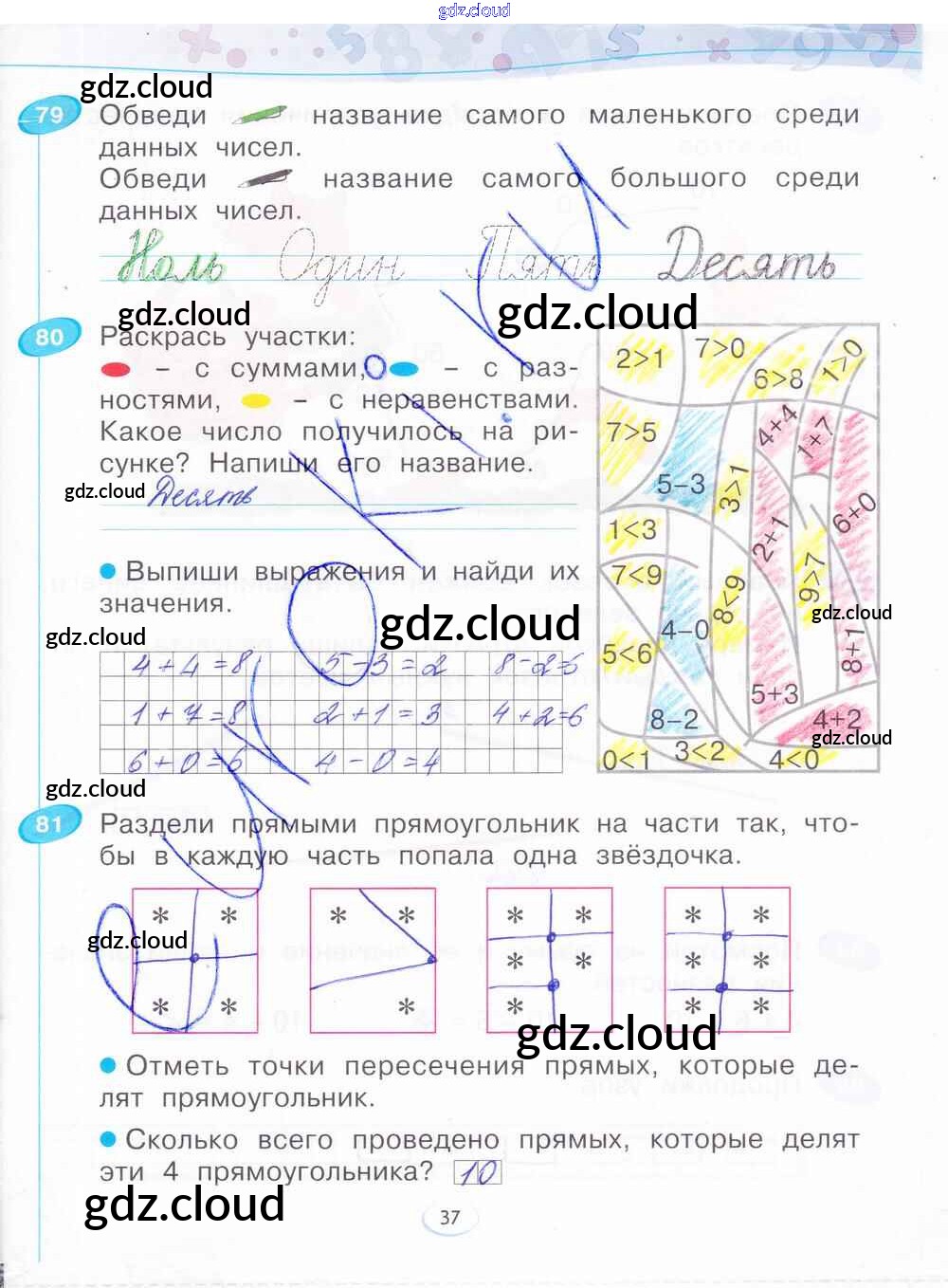 Ответ на задание стр.37 Рабочая тетрадь Математика за 1 (первый) класс Бененсон 2015 Часть 1, 2, 3, 4