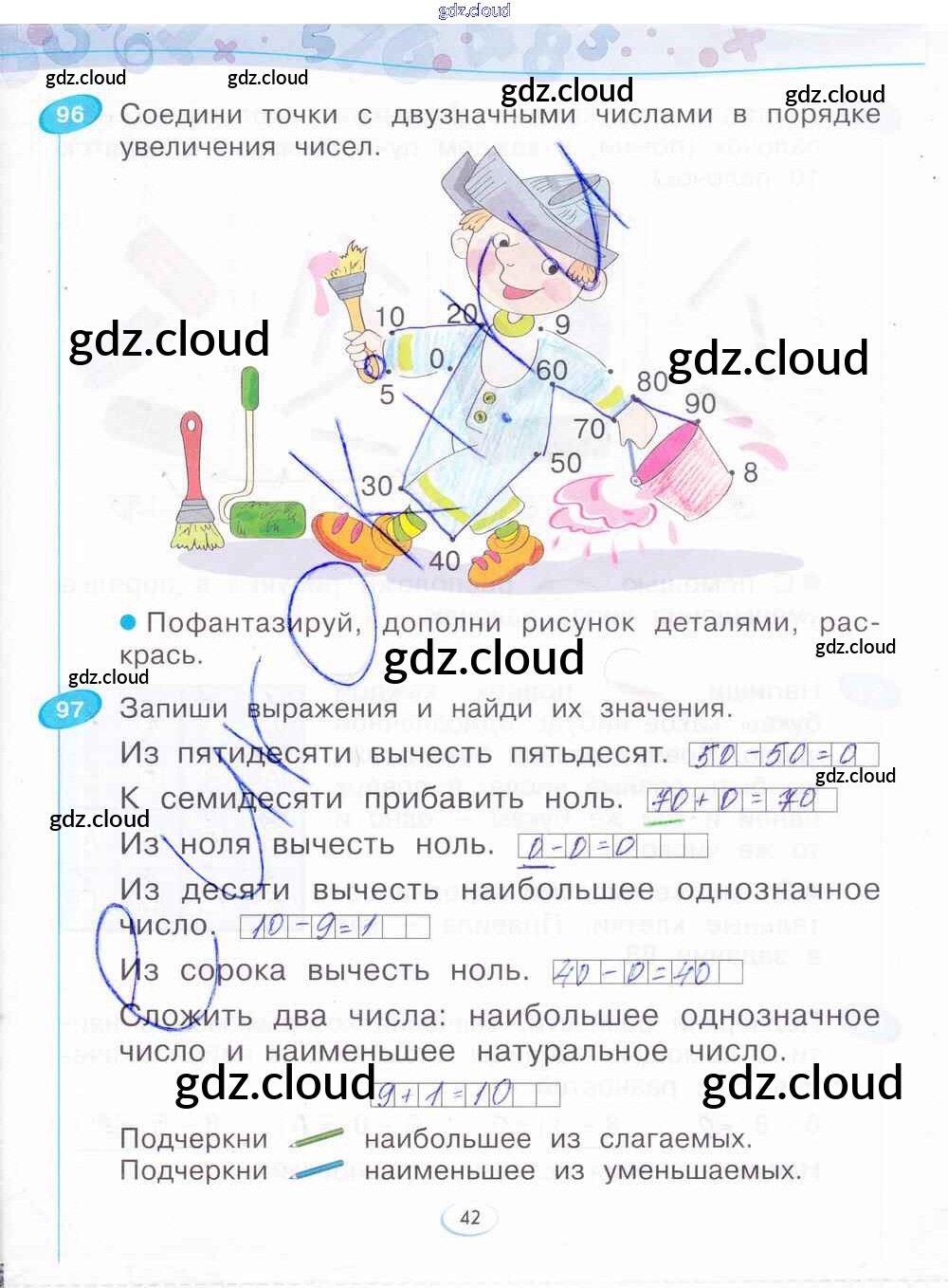 Ответ на задание стр.42 Рабочая тетрадь Математика за 1 (первый) класс Бененсон 2015 Часть 1, 2, 3, 4