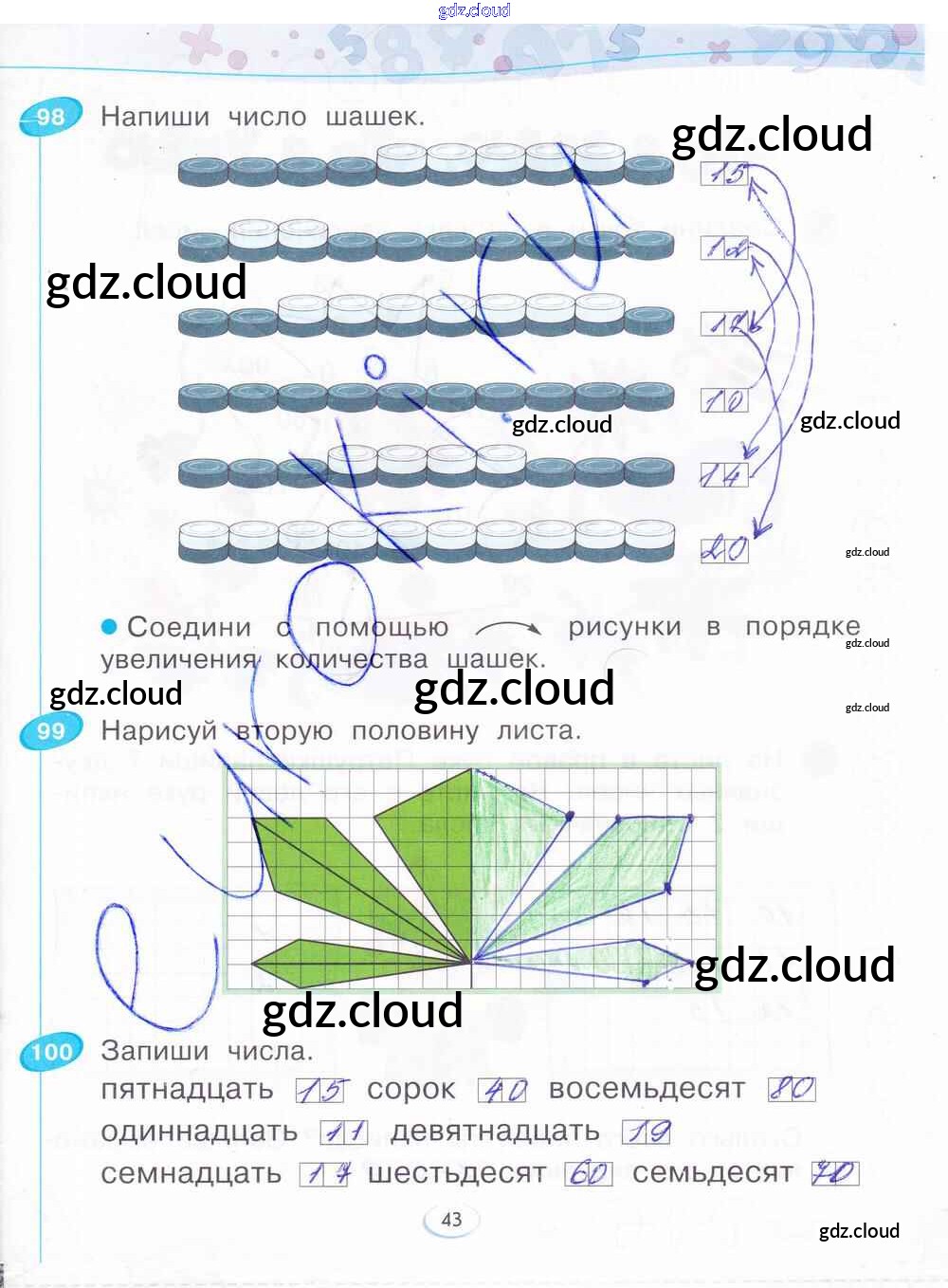 Ответ на задание стр.43 Рабочая тетрадь Математика за 1 (первый) класс Бененсон 2015 Часть 1, 2, 3, 4