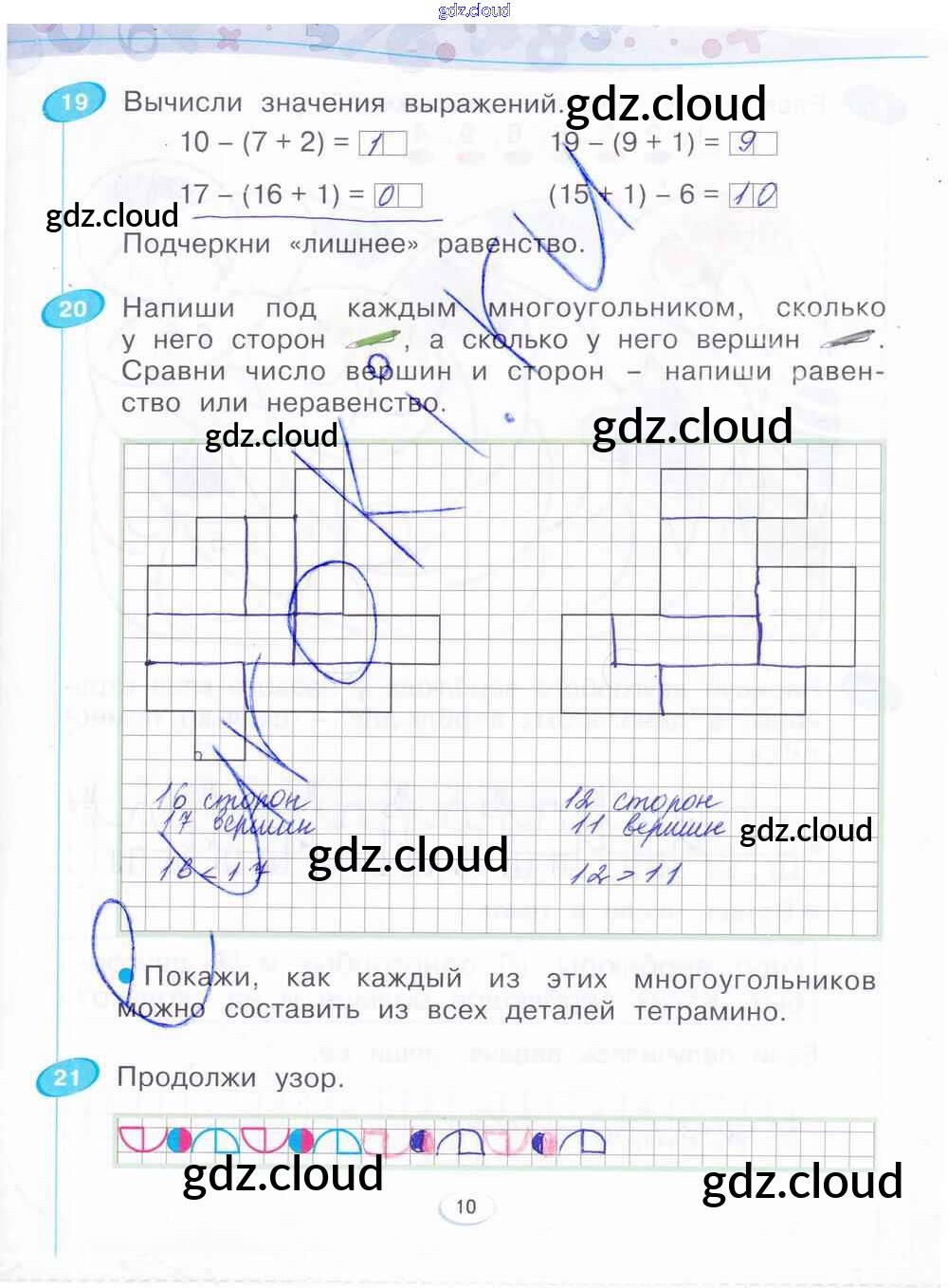 Ответ на задание стр.10 Рабочая тетрадь Математика за 1 (первый) класс Бененсон 2015 Часть 1, 2, 3, 4