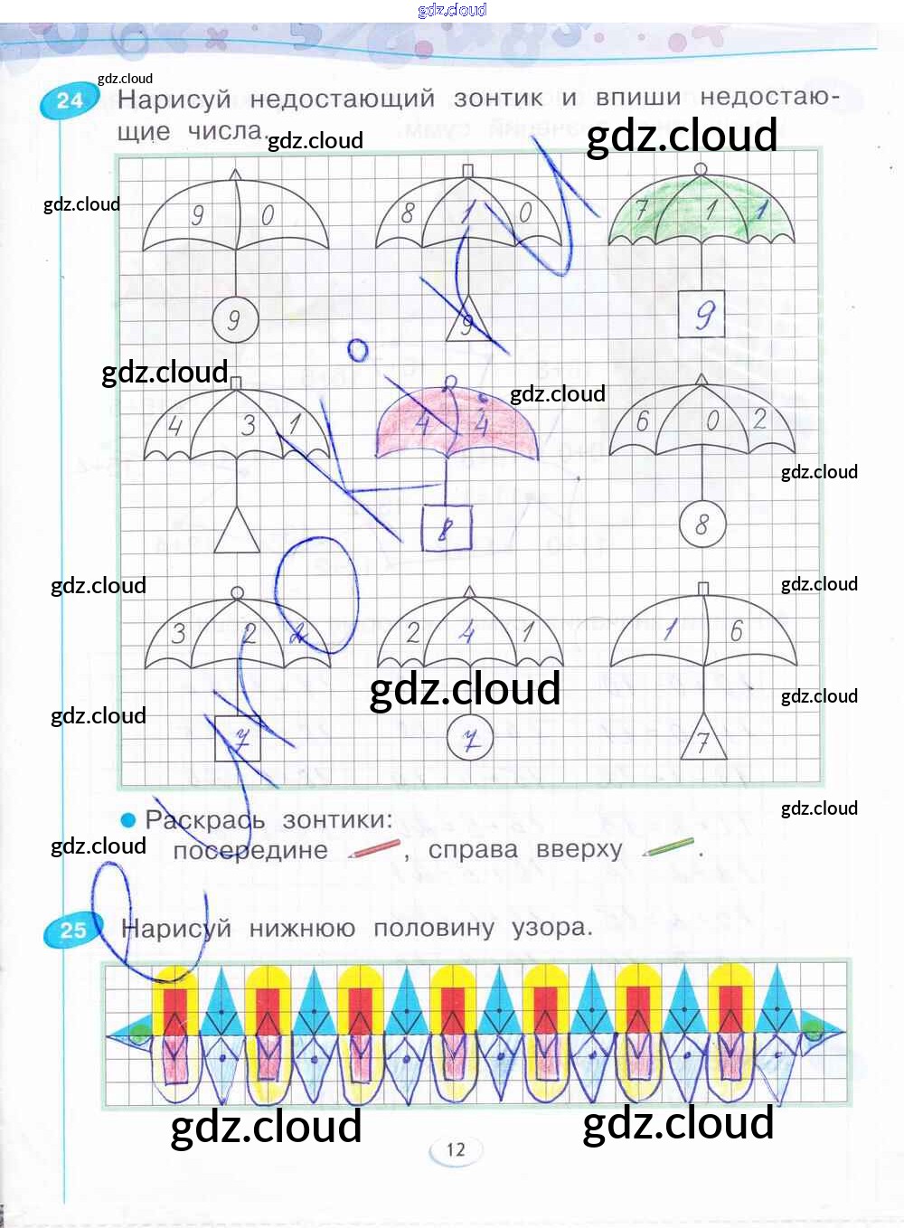 Ответ на задание стр.12 Рабочая тетрадь Математика за 1 (первый) класс Бененсон 2015 Часть 1, 2, 3, 4