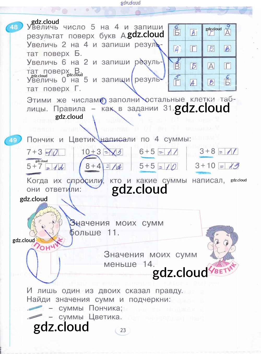 Ответ на задание стр.23 Рабочая тетрадь Математика за 1 (первый) класс Бененсон 2015 Часть 1, 2, 3, 4
