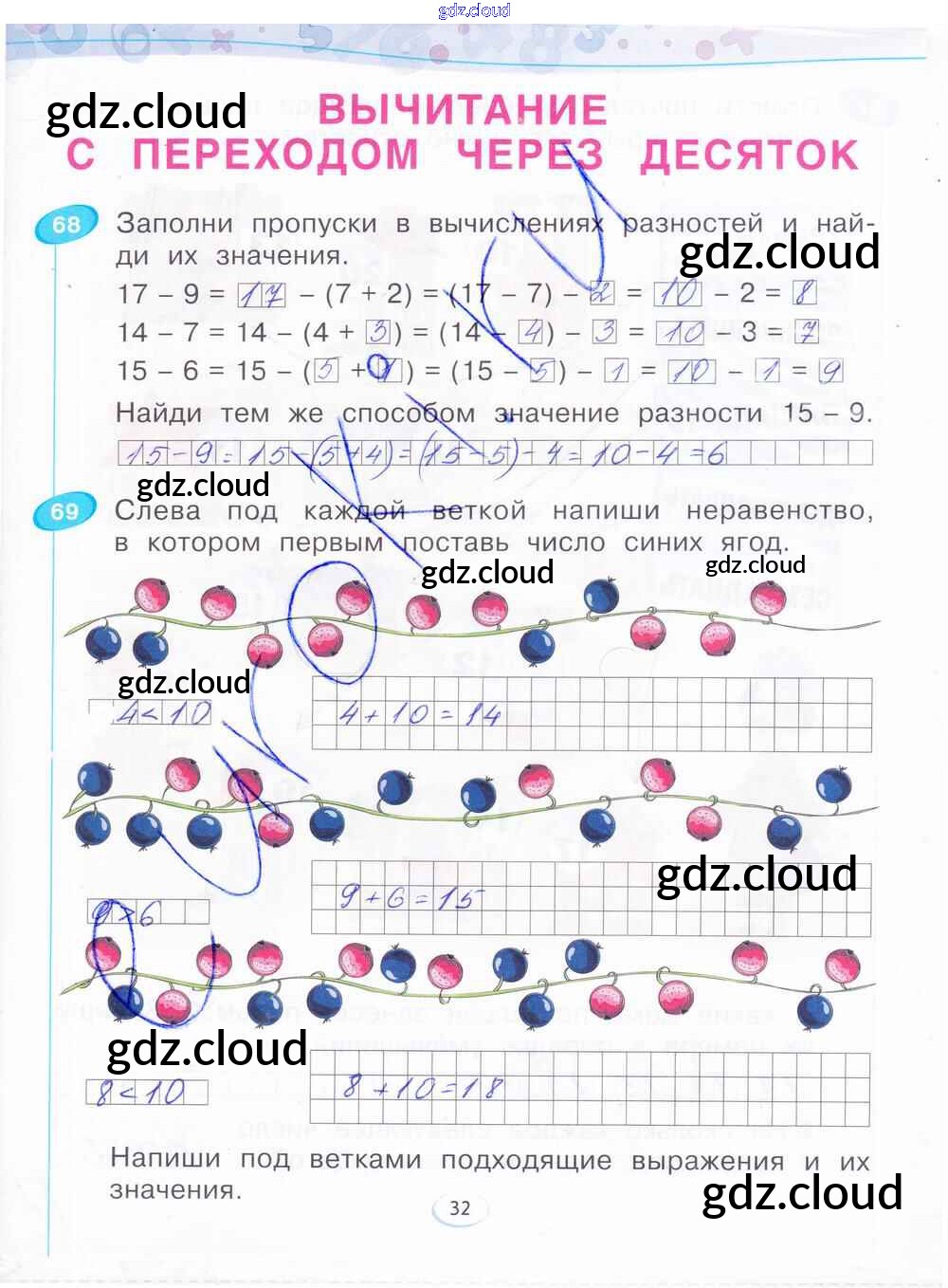 Ответ на задание стр.32 Рабочая тетрадь Математика за 1 (первый) класс Бененсон 2015 Часть 1, 2, 3, 4