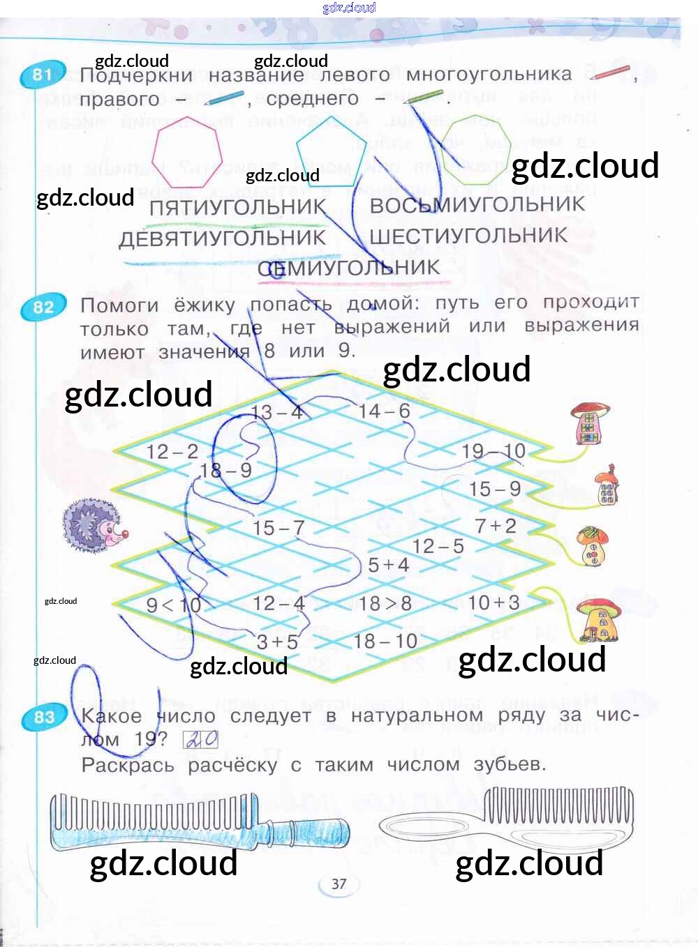 Ответ на задание стр.37 Рабочая тетрадь Математика за 1 (первый) класс Бененсон 2015 Часть 1, 2, 3, 4