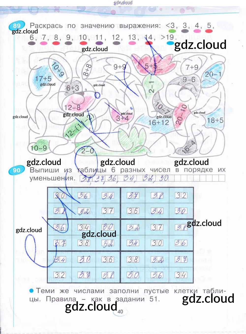 Ответ на задание стр.40 Рабочая тетрадь Математика за 1 (первый) класс Бененсон 2015 Часть 1, 2, 3, 4