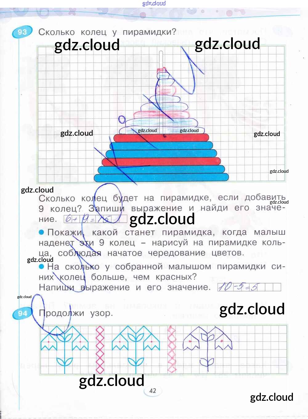 Ответ на задание стр.42 Рабочая тетрадь Математика за 1 (первый) класс Бененсон 2015 Часть 1, 2, 3, 4