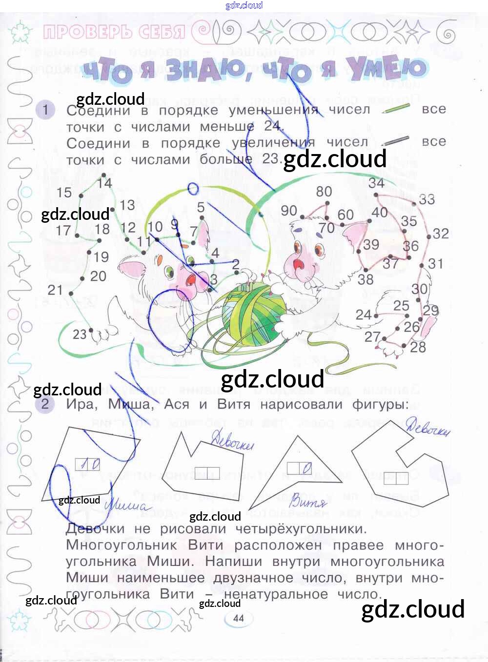 Ответ на задание стр.44 Рабочая тетрадь Математика за 1 (первый) класс Бененсон 2015 Часть 1, 2, 3, 4