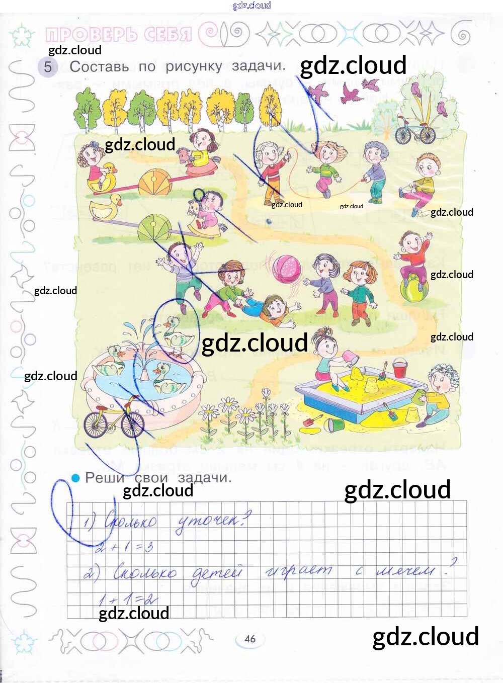 Ответ на задание стр.46 Рабочая тетрадь Математика за 1 (первый) класс Бененсон 2015 Часть 1, 2, 3, 4