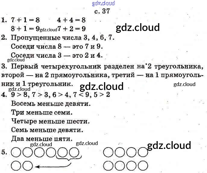 Ответ на задание 37 Учебник Математика за 1 (первый) класс Богданович, Лишенко 2012