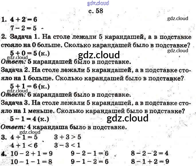 Ответ на задание 58 Учебник Математика за 1 (первый) класс Богданович, Лишенко 2012